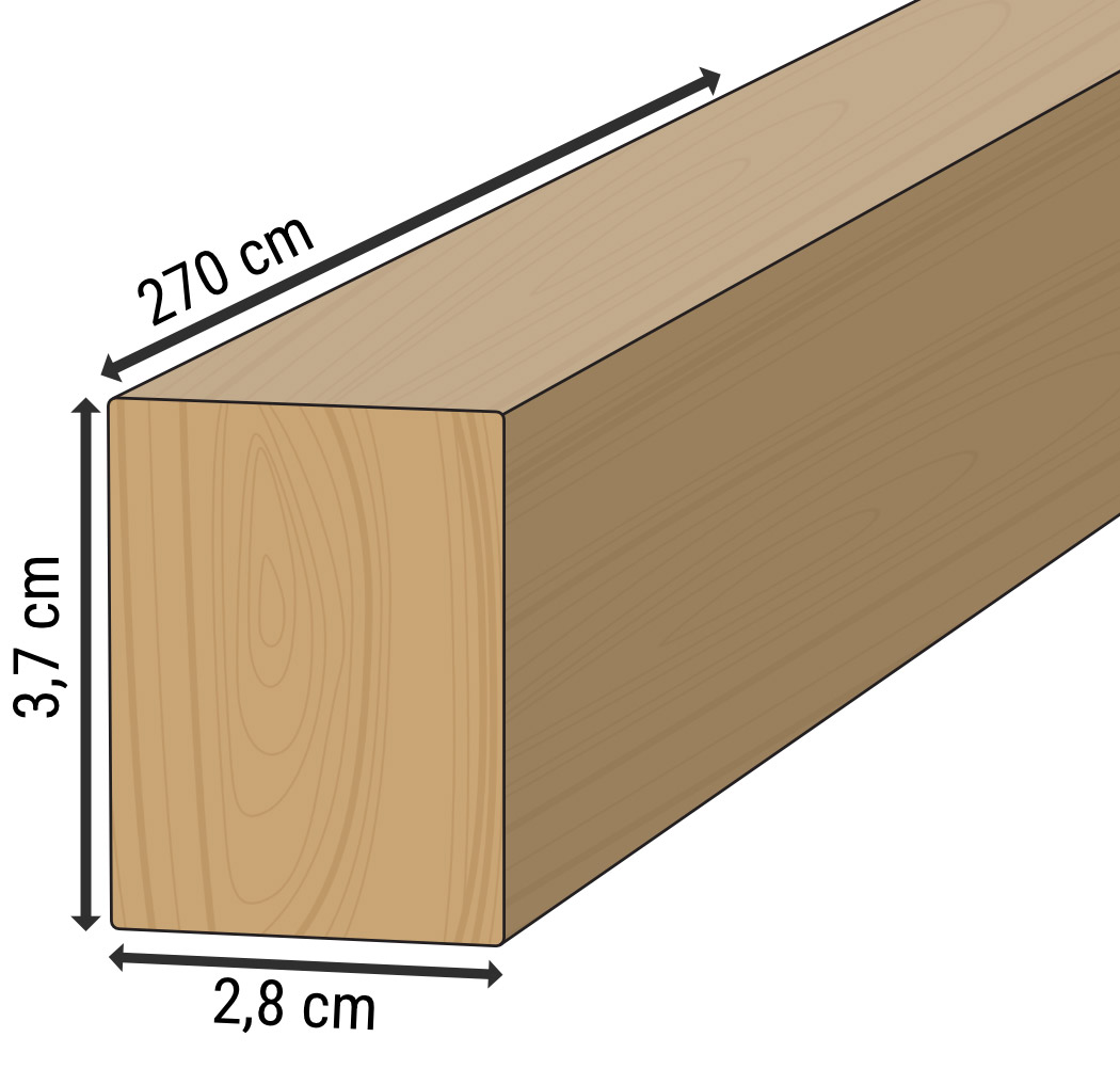 9 x Kunstruktionsholz (3,7 × 2,8 cm, 270 cm lang )