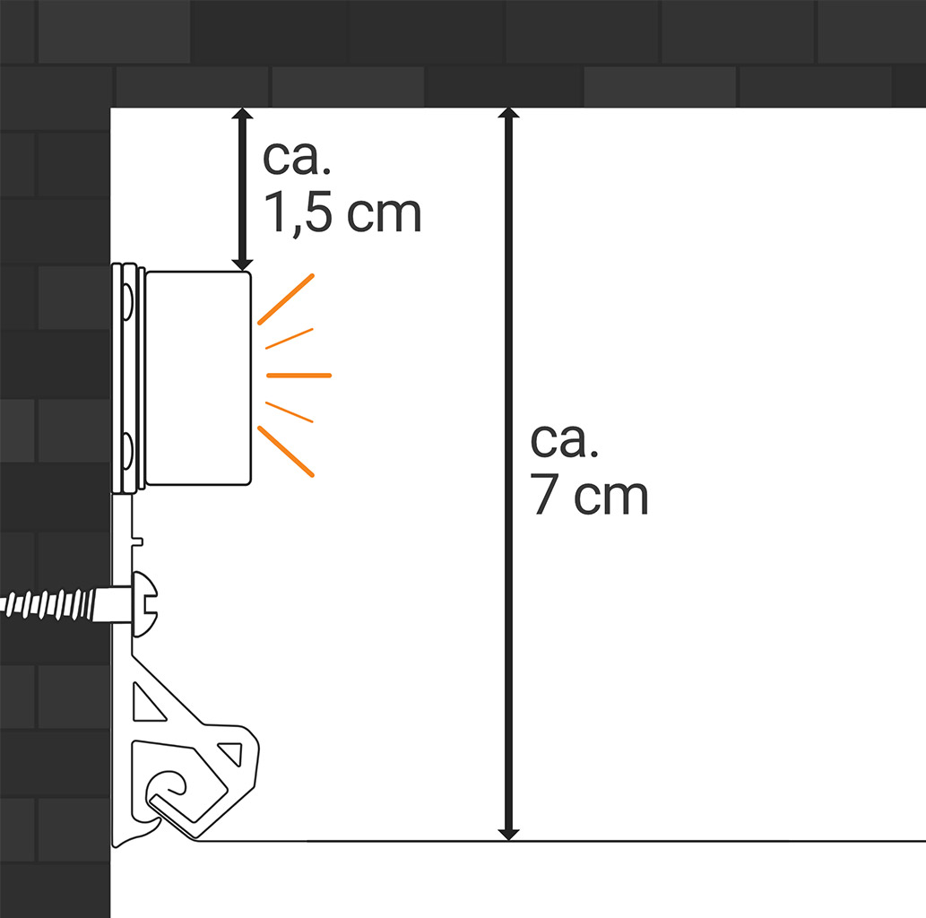 Wir empfehlen für eine optimale Ausleuchtung, dass die LED-Leisten ca. 1,5 - 2 cm Abstand zu der vorhandenen Decke haben. Damit entsteht in Kombination mit unserem Wandprofil eine Gesamthöhe von ca. 7 cm. Für niederige Räume bei denen es auf jeden Zentimeter ankommt, eine ideale Lösung.